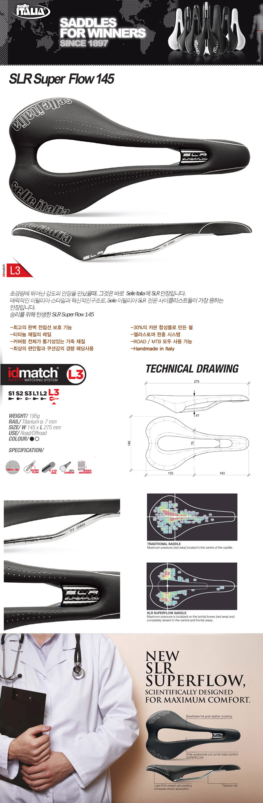 셀레이탈리아 SLR 슈퍼 플로우 L-145 티타늄 레일 안장 195g