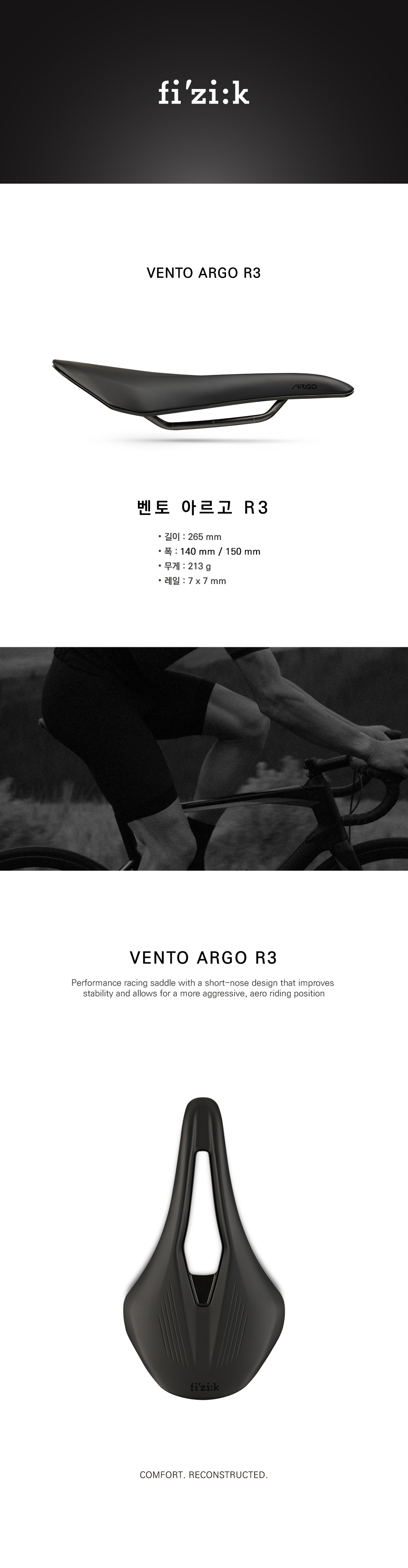 피직 벤토 아르고 R3 짧은 코 전립선 안장