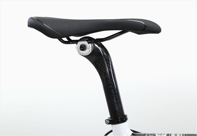 가늘게 가공된 시트스테이와 카본 시트포스트가 어우러져