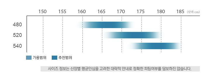 프레임 사이즈는 480, 520, 540 총 3가지로 한국인 체형에 최적화된 지오메트리로 설계되었고,