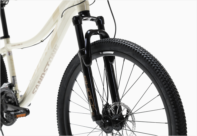 프레임과 함께 구성된 서스펜션 포크는 주행중 발생하는 지면충격을 효과적으로 감소시켜 쾌적한 크루징 라이딩을 지원합니다.