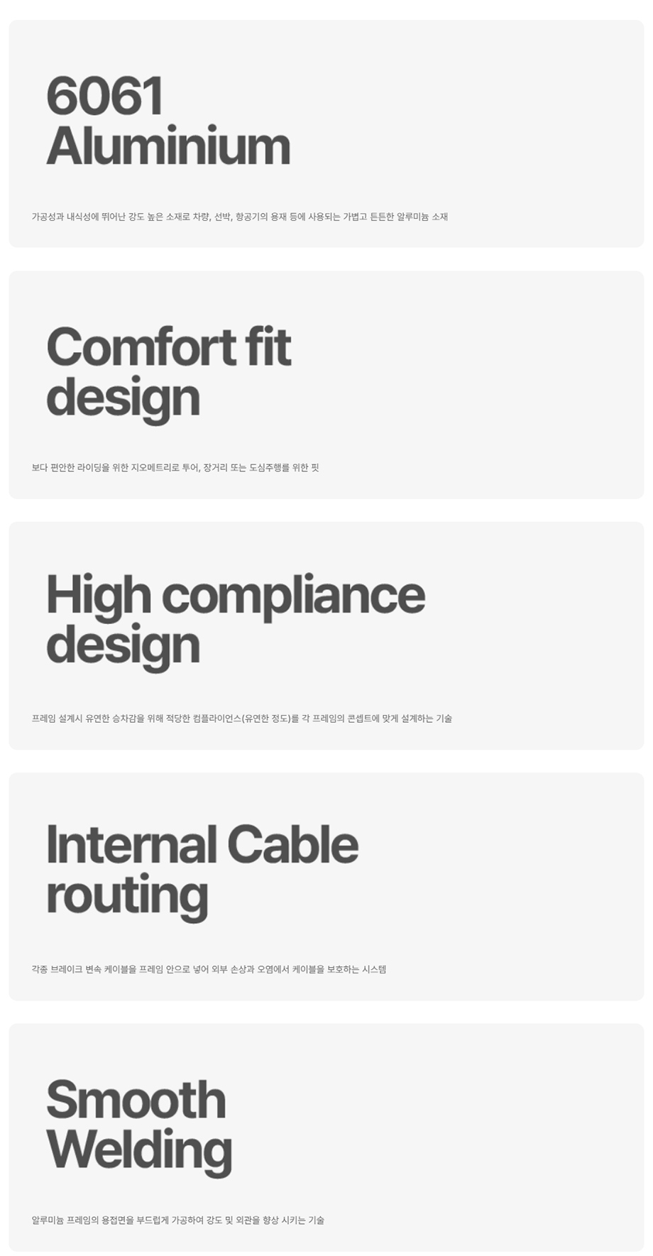 - 수작업으로 조립되고 수차례에 걸쳐 운반되는 자전거 상품의 특성상 불가피하게 발생되는 경미한 스크래치 및 오염, 부품체결 및 볼트장착부위의 도장 크랙.