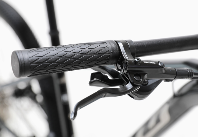 정확하고 안정적인 변속성능의 시마노 데오레 시프터와 유압브레이크 레버.