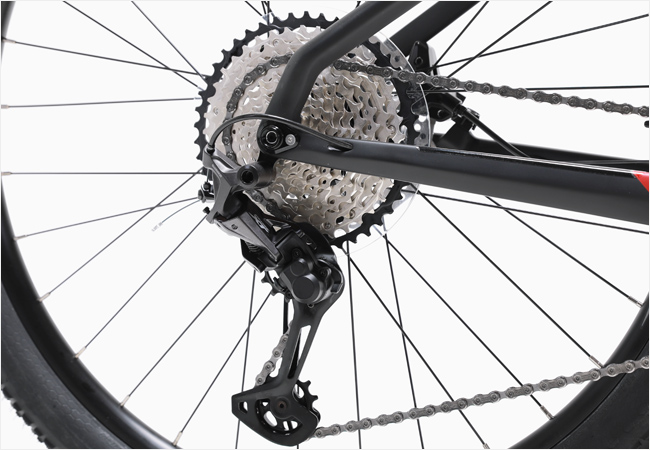 구동계는 시마노 XT 등급이 적용 2x12단의 XC라이딩에 효과적인 기어배율을 제공하며 브레이크는 우수한 제동성능의 시마노 MT-410이 적용되어 익스트림한 라이딩을 즐기실수 있습니다.