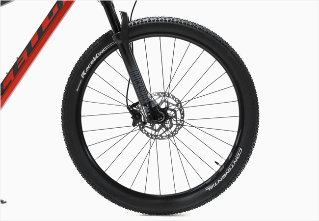 프레임과 함께 구성된 락샥 쥬디 골드 에어 서스펜션 포크는 내구성이 뛰어난 강철 상부 튜브와 Turnkey 잠금 기능을 제공하며, 뛰어난 퍼포먼스 능력으로 다양한 오프로드 지형에서 탄탄한 주행성이 특징입니다.