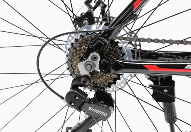 3x7, 총 21단의 시마노 기어와 정비가 용이한 기계식 디스크 브레이크가 장착되어 안전하고 쾌적한 라이딩을 할 수 있습니다.