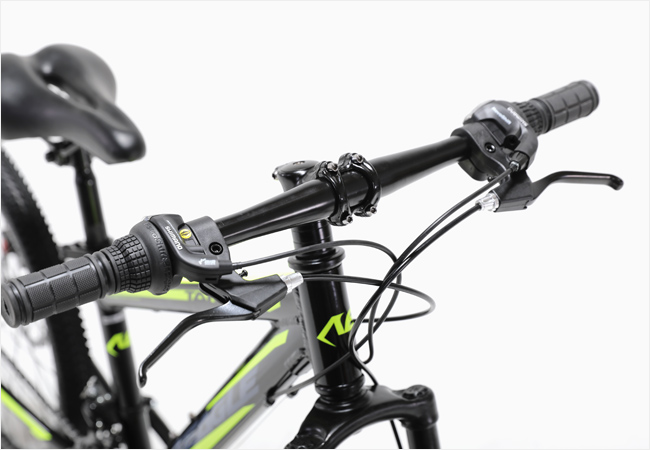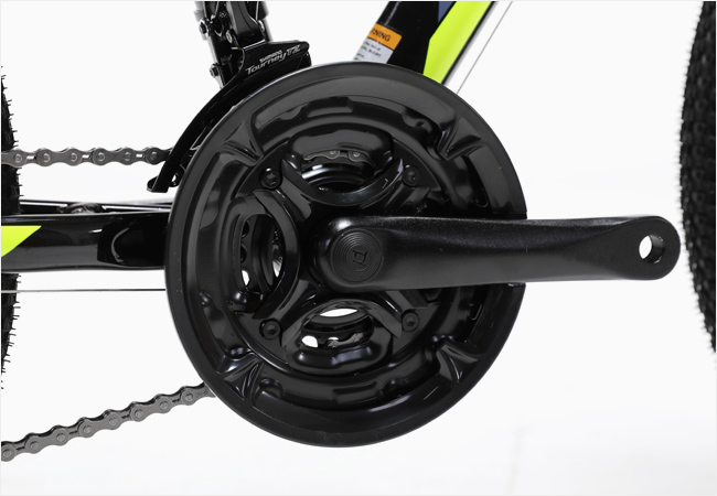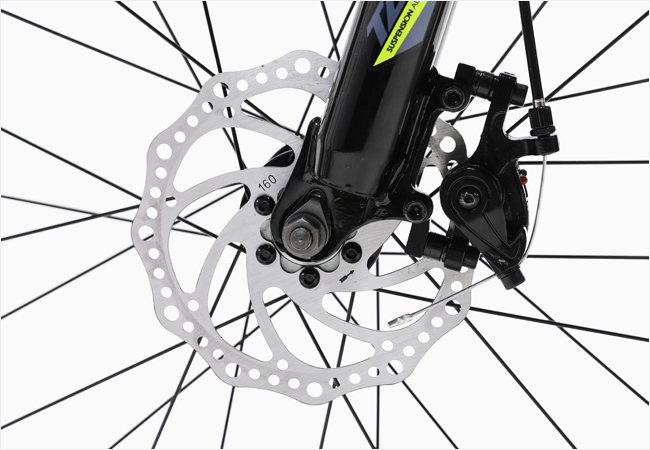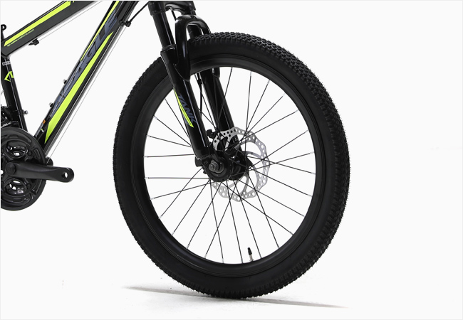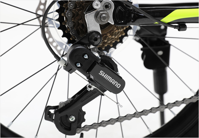 시마노 투어니 3x7단(21단)기어가 장착되었으며 안전한 라이딩을 위한 디스크 브레이크가 채용되었습니다.
