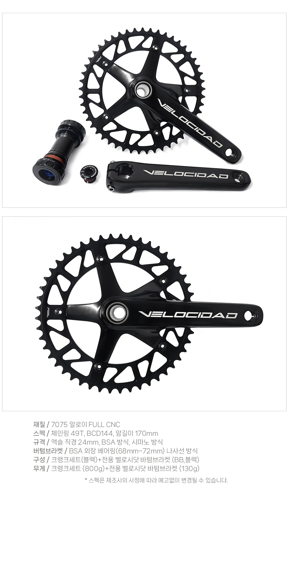 콘스탄틴 벨로시닷 EX-1 픽시자전거 전용 외장 크랭크셋 (49T)