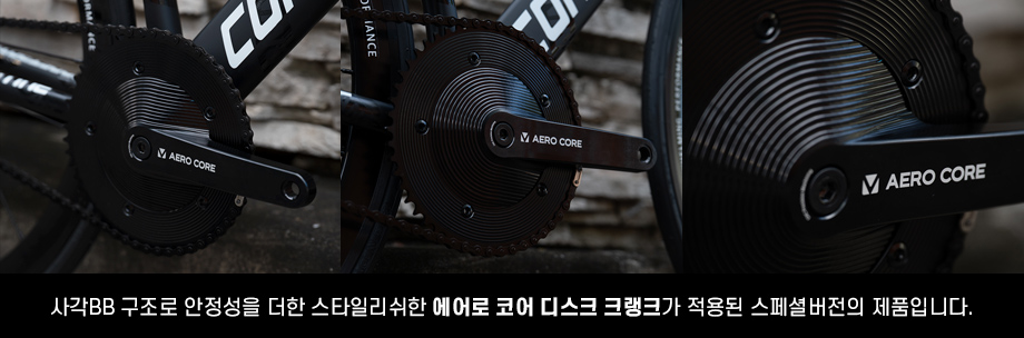 새롭게 적용된 에어로 코어 디스크 크랭크셋은 멋진 외관은 물론 에어로 효과를 극대화합니다.