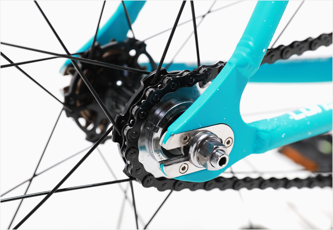 입문 픽시라이더에게 적합한 기어비로 풍성한 스키드패치를 구성하며 견고한 드롭아웃은 스프린트 상황에서 보다 안정감있는 페달링을 지원합니다.