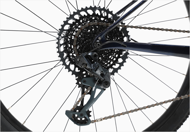 스램 GX 이글 1x12싱글 변속시스템으로 거친 주행환경에서도 안정적인 시프팅 성능과 견고한 페달힘전달력을 제공합니다.