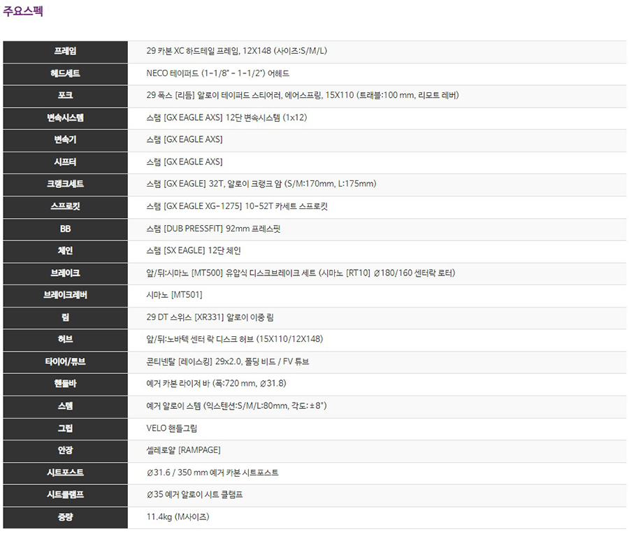 2022 예거 벤츄라 G AXS 카본 MTB 29