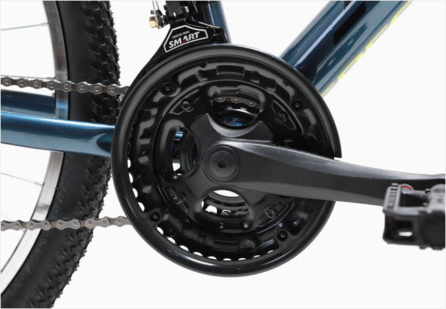 주행중 발생하는 충격을 효과적으로 흡수해주는 서스펜션 포크가 장착되었으며 3x7단의 원터치 기어가 장착되어 다양한 코스를 효과적으로 주행할 수 있습니다.