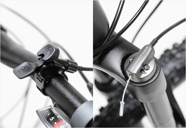 핸들바에 위치한 리모트 락아웃 레버를 통해 서스펜션의 리바운드 기능을 제어하여 잘 포장된 도로에서는 리바운드를 OFF하여 힘손실적은 주행을 할 수 있으며, 오프로드에서는 리바운드를 On하여 서스펜션의 기능을 활용한 안정감있는 탑승이 가능합니다.