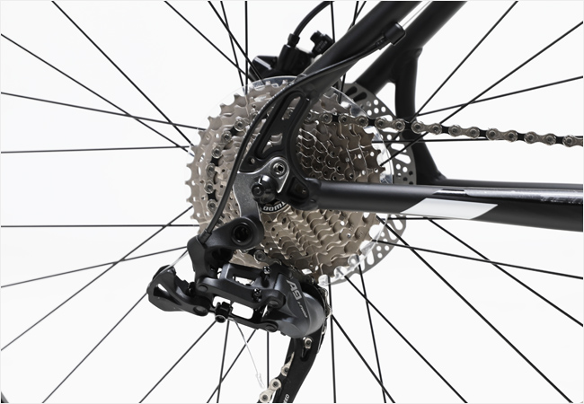 가성비 좋은 A9 변속시스템이 적용되어 3x11단의 광폭기어배율을 지원합니다.