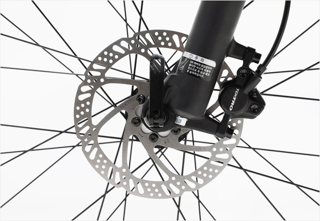 브레이크는 강력한 제동성능의 텍트로 유압디스크가 장착되어 보다 안전하고 쾌적한 라이딩을 즐길 수 있습니다.
