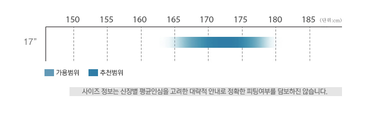 제품 색상은 블랙 단일컬러이며 프레임사이즈도 17인치 단일사이즈 제품으로 신장 165~175까지 탑승하기 좋습니다.