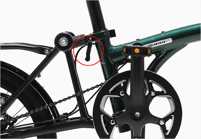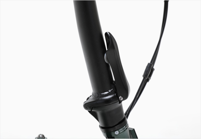 시트튜브 후방의 레버를 당기고 자전거를 드는것만으로 빠르게 자전거를 접을 수 있습니다.