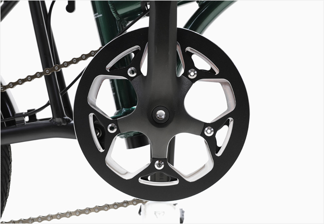 52T 체인링이 구성된 크랭크세트는 체인이탈 방지캡이 적용되었습니다.