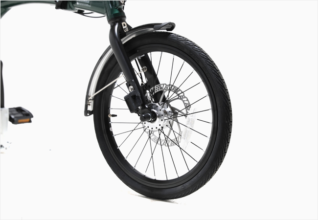휠은 16인치 미니벨로 휠셋이 적용되어 도심환경에서의 데일리 바이크로 편하게 탑승하실 수 있습니다.