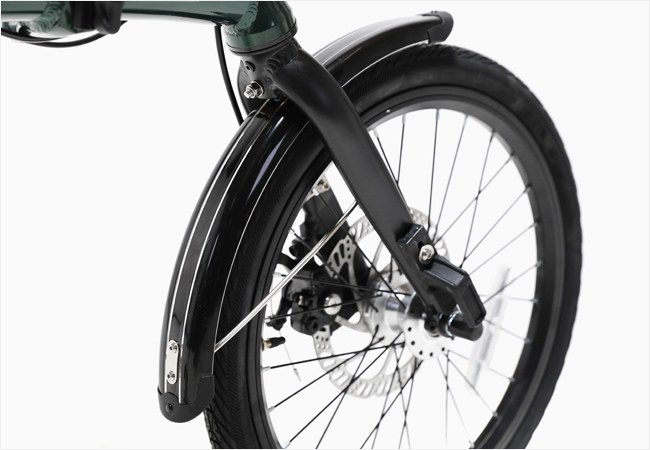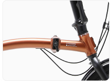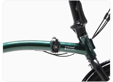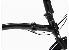 프레임 가운데에 위치한 레버와 스템 레버를 통해 자전거를 더욱 컴팩트하게 폴딩할 수 있습니다.