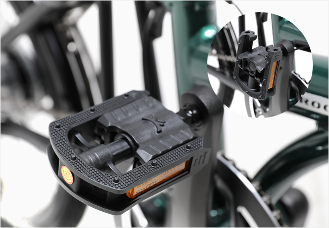 자전거 폴딩시 더욱 컴팩트하게 보관/이동할 수 있도록 폴딩 페달이 구성되었습니다.