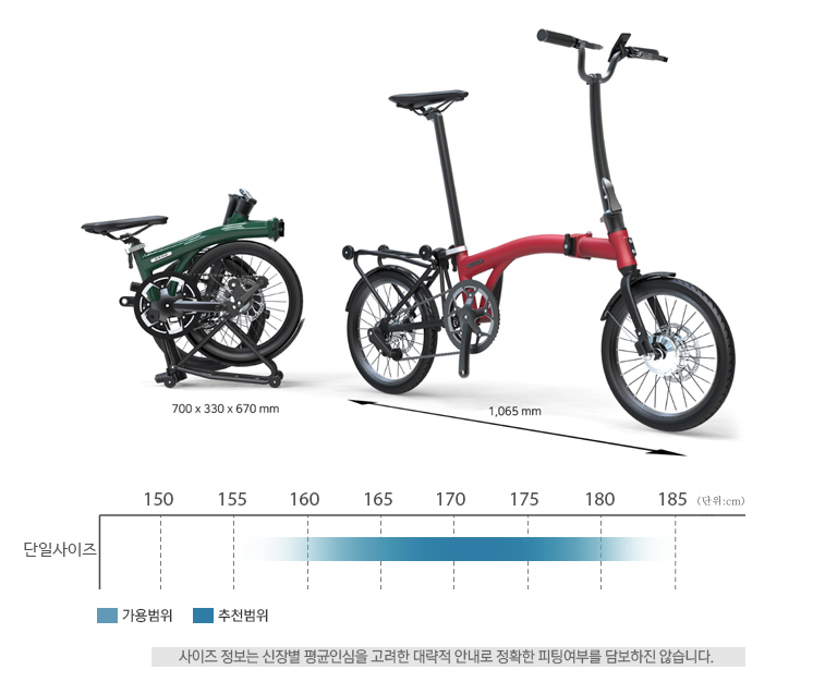 3군데의 레버를 조작해주시는 것만으로 약 700x330x670의 아주 컴팩트한 사이즈로 자전거를 접을 수 있죠.
