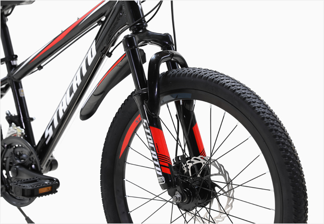 녹걱정 없이 타기 좋은 가볍고 경쾌한 '알루미늄 프레임'과 주행중 발생하는 충격을 흡수해주는 '22인치 서스펜션 포크'