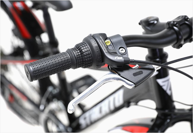 폭넓은 기어를 컨트롤하기 쉬운 '시마노 레보 21단 그립시프터', 안전한 라이딩을 위한 '디스크 브레이크'구성!