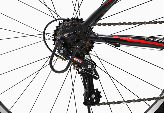 폭넓은 기어를 컨트롤하기 쉬운 시마노 이지파이어 21단 변속레버가 장착되었으며 시마노 3x7단의 기어가 적용되어 안전한 라이딩을 위한 V-브레이크가 장착되어 안전한 라이딩을 즐기실 수 있습니다.