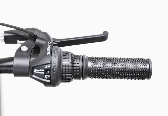 안정적인 변속이 이루어지는 인덱스 타입의 시마노 레보 그립시프트는 현재 단수를 표시해주는 인디게이터가 장착되어 초심자가 사용하기 좋습니다.