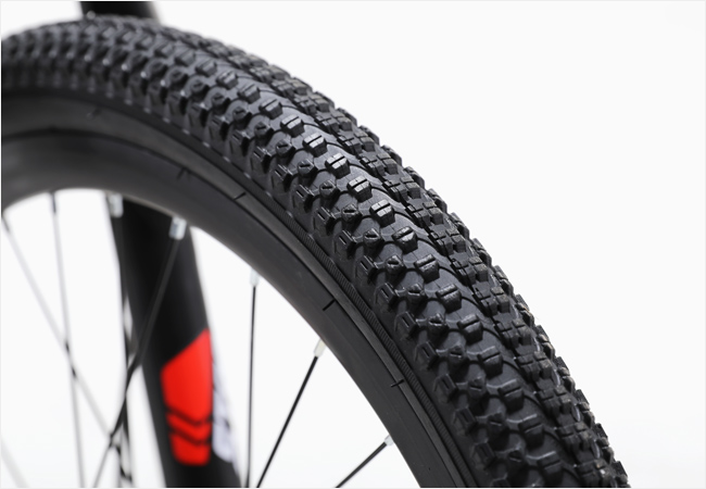 잘 포장된 도로는 물론 임도에서도 주행이 가능한 올라운드 블럭 타입이 적용된 20x1.95 켄다타이어.