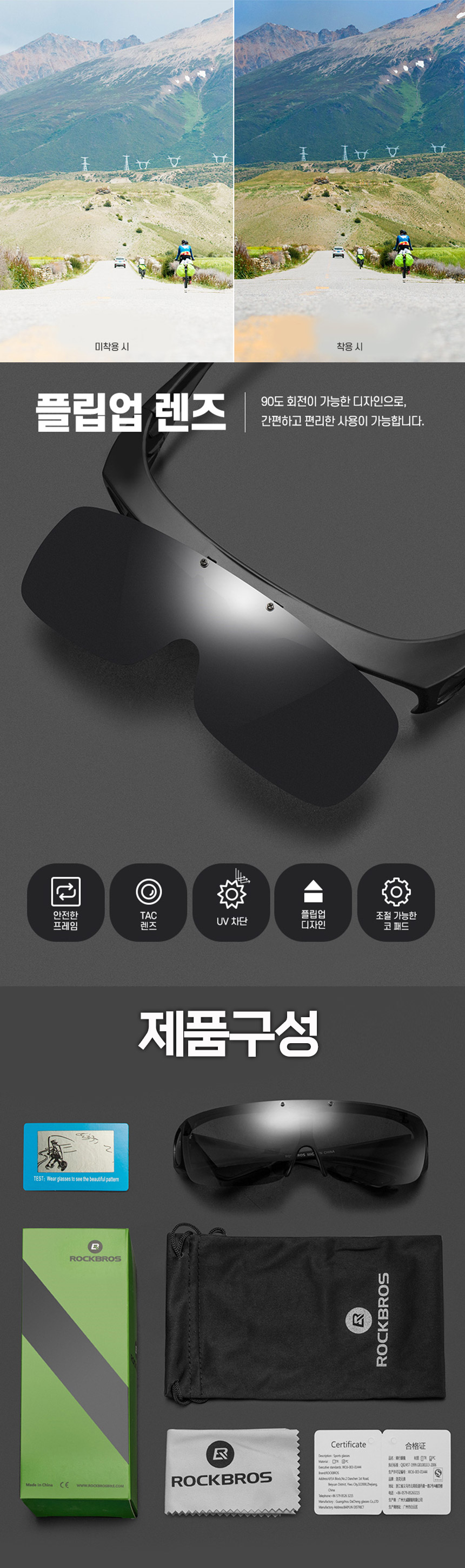 락브로스 플립업 안경위 착용 스포츠 고글
