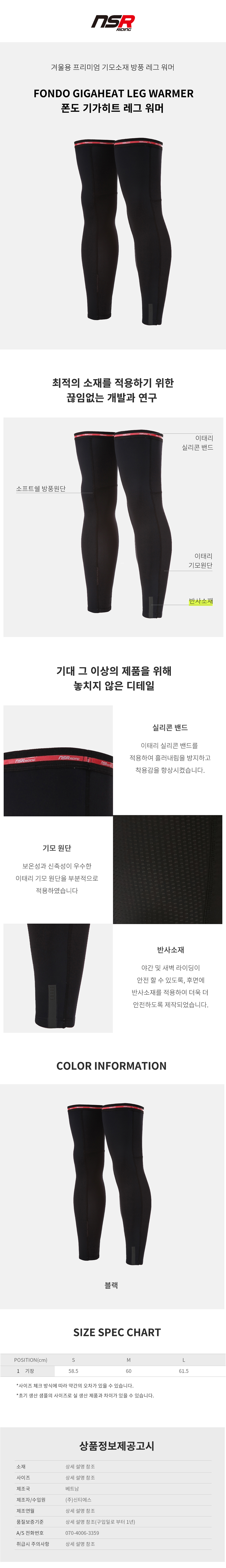 NSR 폰도 기가히트 레그 워머 (겨울 기모 방풍 토시)