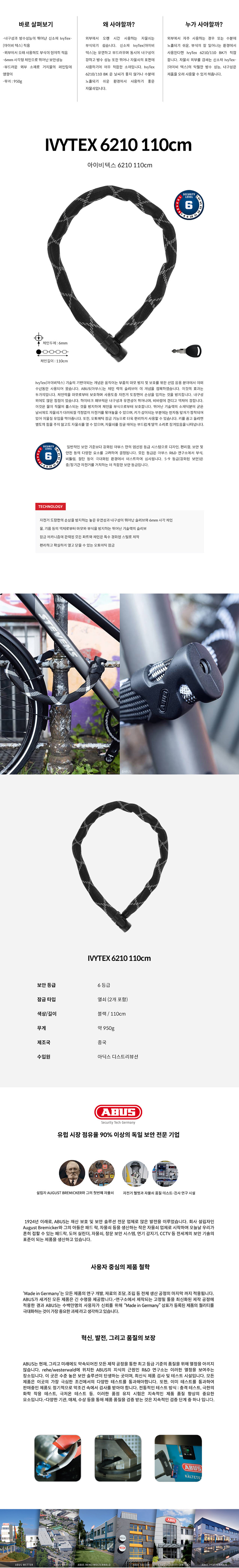 ABUS 아부스 아이비텍스 6210 자물쇠 110cm