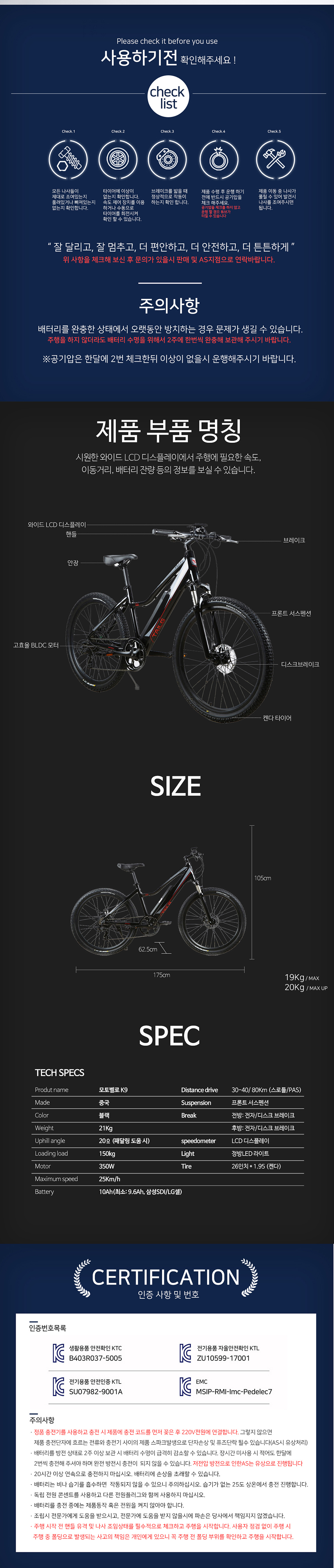 - 자전거에 볼트와 너트로 체결된 파츠들은 주행 시 진동에 의하여 풀릴 수 있으므로 소음 및 유격 발생시 운행을 멈춤고 조여주셔야합니다.