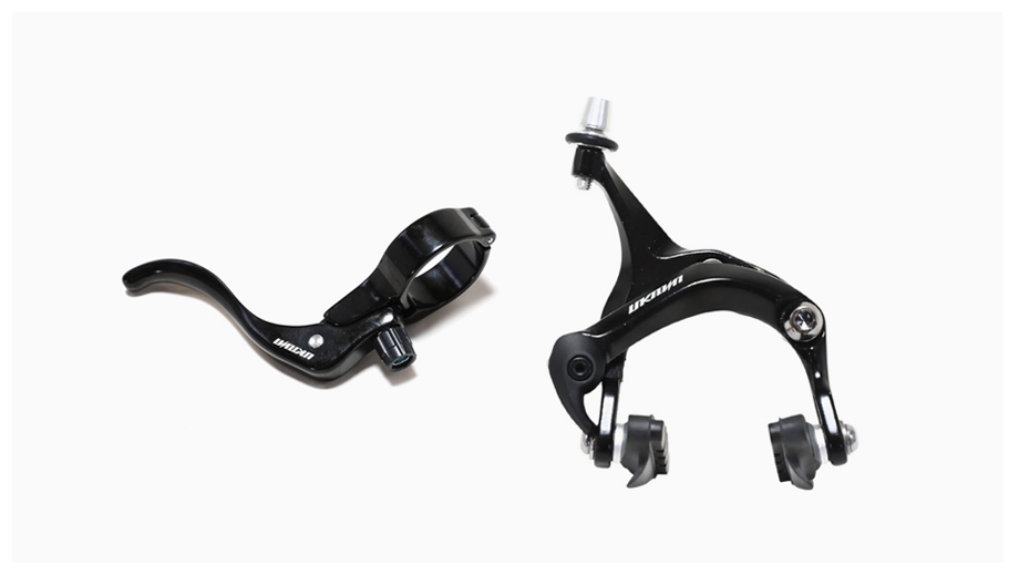 언노운의 로고가 적용된 인라인 브레이크 레버와 캘리퍼 브레이크
