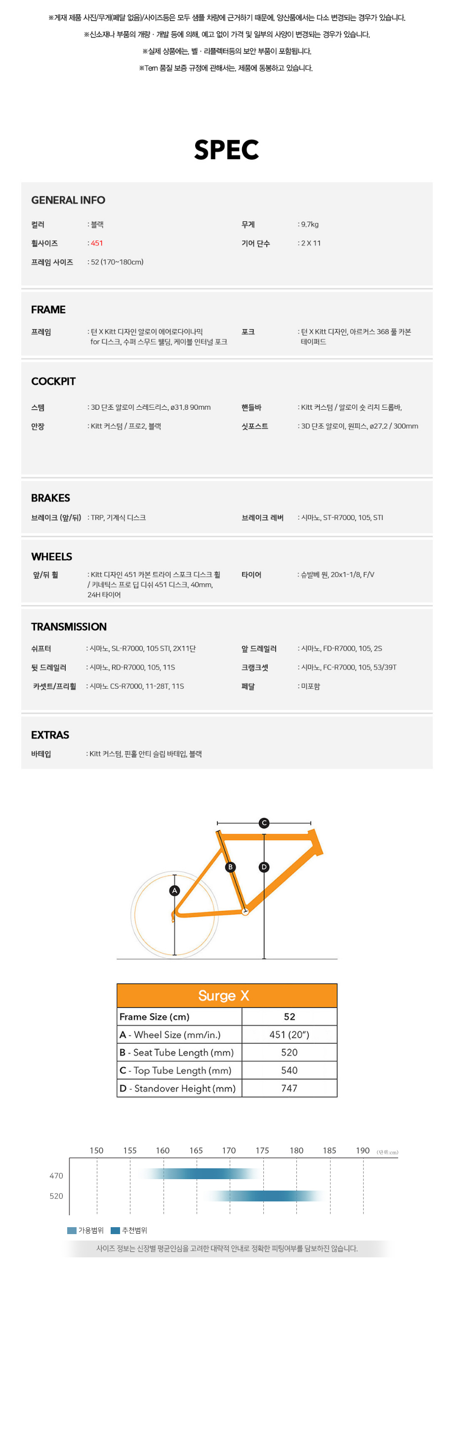 - 수작업으로 조립되고 수차례에 걸쳐 운반되는 자전거 상품의 특성상 불가피하게 발생되는 경미한 스크래치 및 오염, 부품체결 및 볼트장착부위의 도장 크랙.