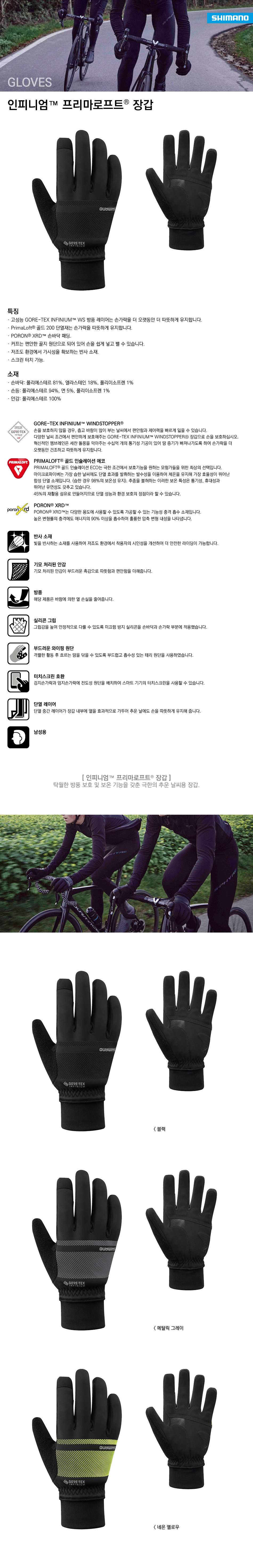 시마노 인피니엄 프리마로프트 장갑