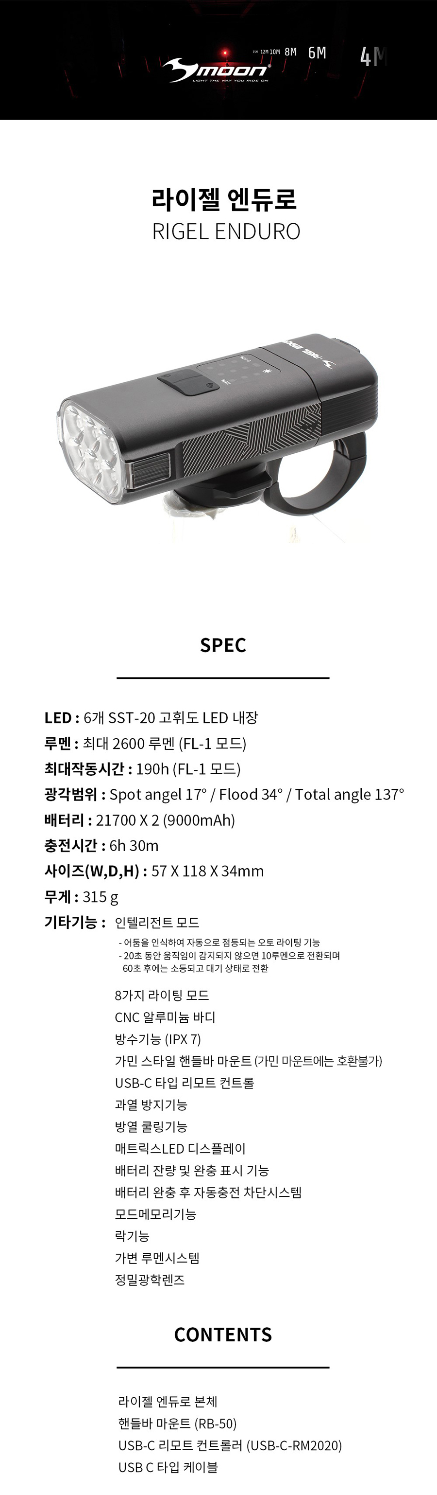 문라이트 라이젤 엔듀로 초고성능 자전거 전조등 2600루멘