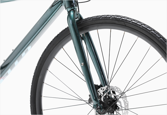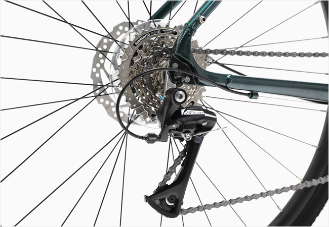 시마노 아세라+알투스 등급의 구동계를 통해 폭넓은 기어배율을 지원하여 다양한 환경에서 안정적인 주행성을 발휘합니다.