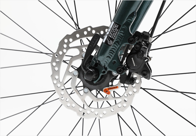 특히 강력한 제동성능의 유압디스크 브레이크가 장착되어 더욱 안전하며 쾌적한 라이딩을 즐기실 수 있습니다.