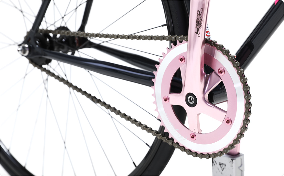 프레임의 핑크 데칼 색상에 크랭크셋를 맞춘거라는데 저는 개인적으로 별로인거같아서 추후 크랭크는 그냥 검정색 깔끔한거로 교체하시는게 어떨가 싶습니다.