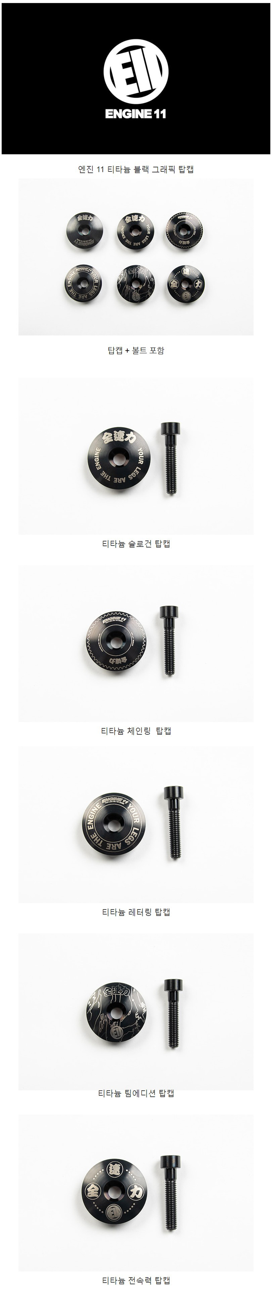 엔진11 티타늄 블랙그래픽 탑캡 자전거 핸들스템 탑캡