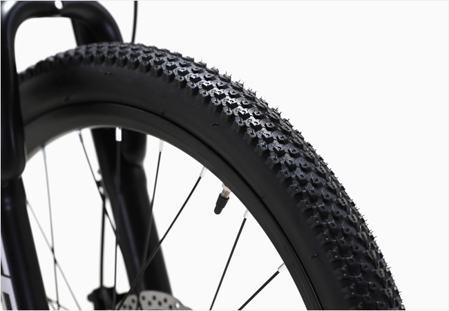 22인치 휠사이즈의 제품으로 다양한 지면환경에서도 안정적인 주행을 위한 스몰블록 타이어가 적용되었으며 앞/뒤로 구성된 머드가드를 통해 깔끔하고 쾌적하게 탑승가능합니다.