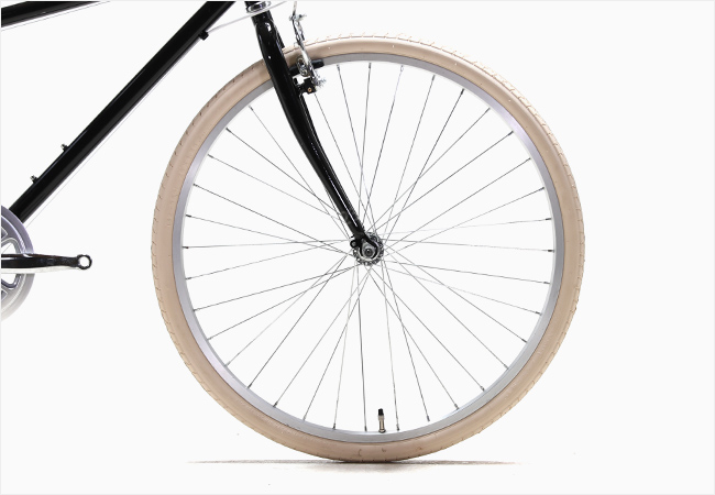 크림 컬러 타이어와 클래식 스타일 안장 & 핸들바가 고급스러운 분위기를 연출해줘요.