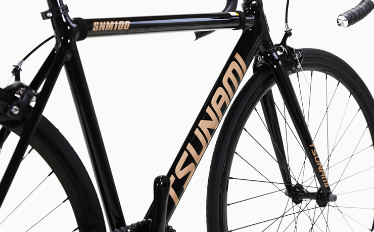 쓰나미 SNM-100 픽시(1st)는 이미 수준높은 퀄리티로 인정받은 SNM-100 프레임셋에 중국 내수용 파츠가 아닌 국내에서 다년간 검증된 픽시 전용 파츠를 장착하여 성능과 내구성을 업그레이드한 제품입니다.