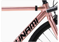 경쾌한 라이딩을 즐기기에 적합한 더블버티드 알로이 프레임은 각 용접면을 부드럽게 가공한 스무스 웰딩 공법이 적용되어 매끈하고 수려한 외관을 완성하였습니다.