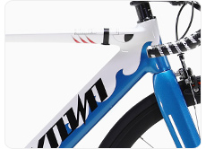 포스 넘치는 에어로 프레임과 조화를 이루는 JDG43 풀-카본 포크는 넓은 면적의 카본 블레이드 설계에도 불구하고측면 바람을 효과적으로 분산시켜 안정적인 조향성을 제공하며, 노면의 잔진동을 부드럽게 상쇄시켜 보다 편안하고 안정감 있는 승차감을 구현합니다.