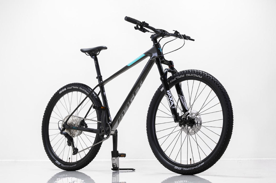 시마노 MT200 유압 디스크 브레이크는 제동 컨트롤이 안정적이고, 29인치 휠셋과 슈발베 29x2.25 타이어 조합은 구름성과 접지력의 균형이 좋습니다. 콕핏은 넓은 핸들바와 적절한 스템 길이로 XC 성향의 조향 안정감을 살렸으며, 실제 촬영 기준 L사이즈 페달 포함 무게는 13.16kg입니다.